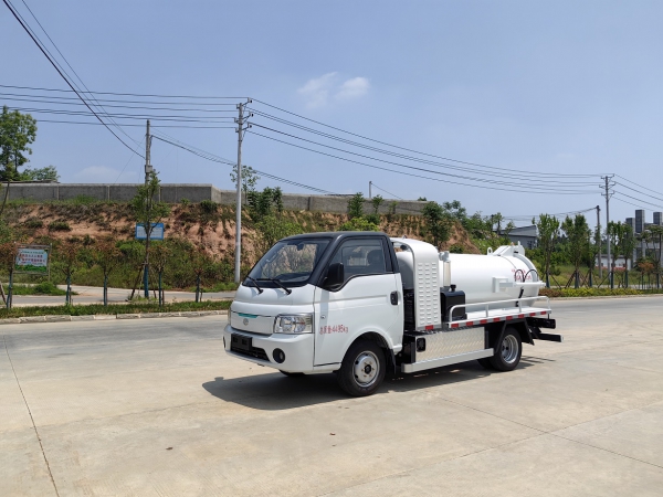 1、该款4.5吨纯电动吸污车是我公司开发的全新一代环卫产品,采用我司自研CL1041JBEV型二类载货汽车纯电动底盘改装。